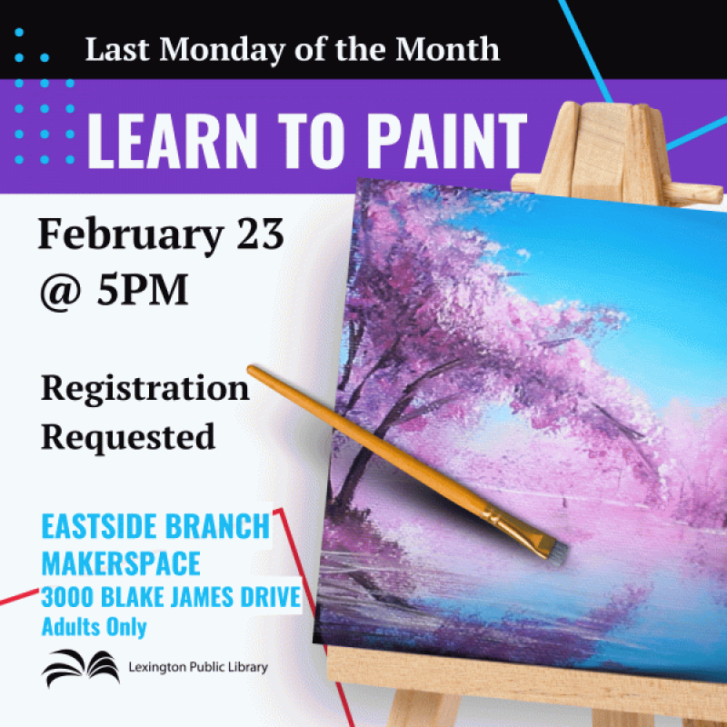 Calling all adults! Join us for a relaxing hour as we follow along with a video and learn to paint. We meet every month on the last Monday of the month. All skill levels invited. Materials will be provided as supplies last. Registration Requested.