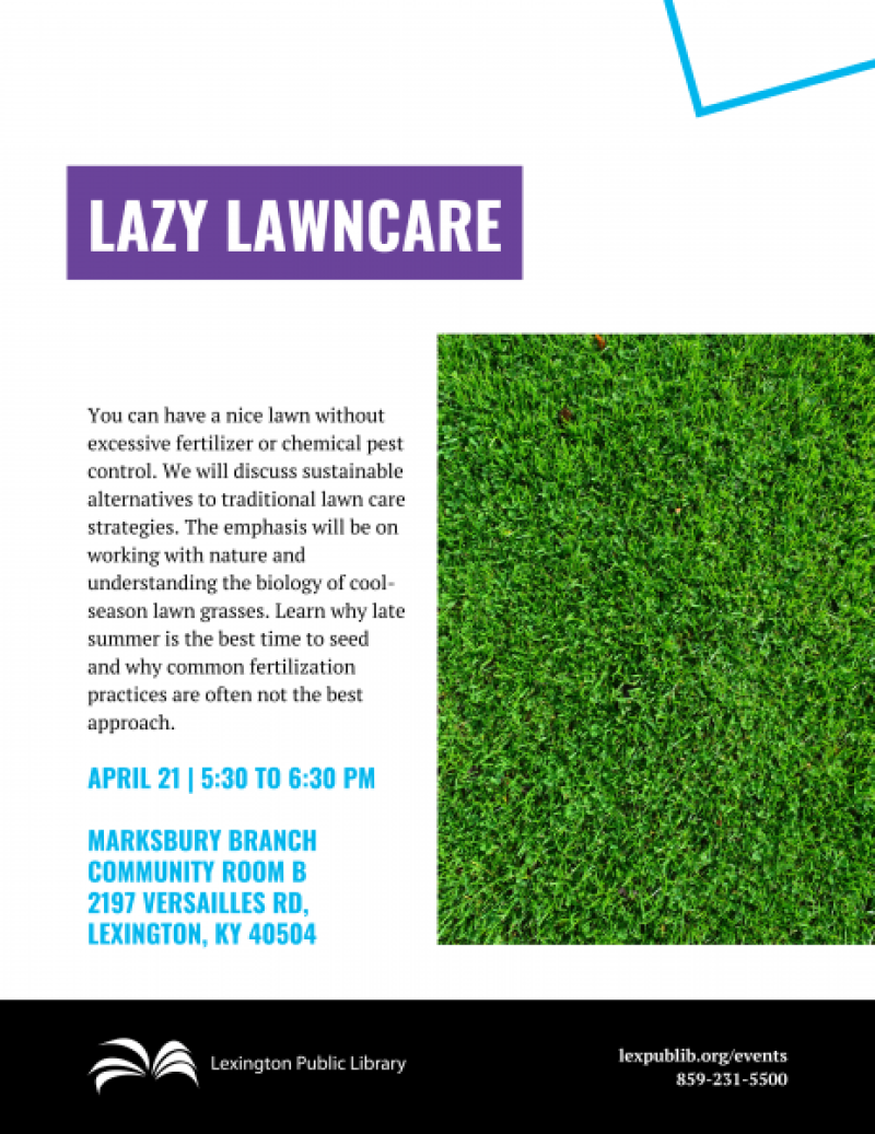 You can have a nice lawn without excessive fertilizer or chemical pest control. We will discuss sustainable alternatives to traditional lawn care strategies. The emphasis will be on working with nature and understanding the biology of cool-season lawn grasses. Learn why late summer is the best time to seed and why common fertilization practices are often not the best approach.